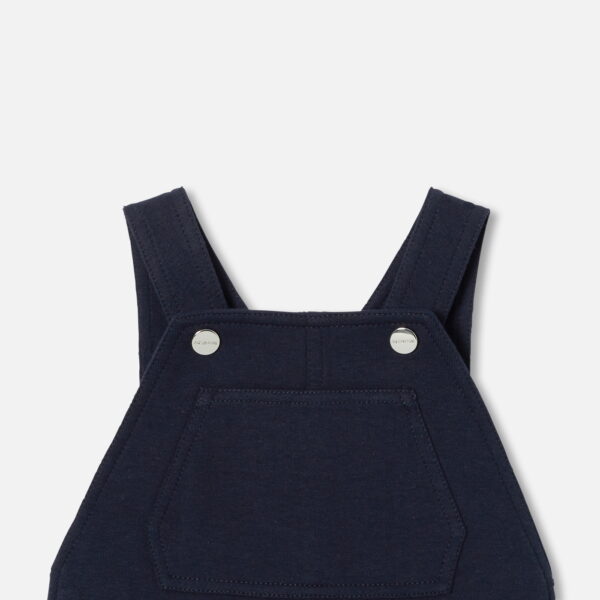 Season after season, Jacadi revisits the emblematic dungarees. Available in navy milano knit, this everyday piece will bring comfort and softness to your little boy. Sleek and easy to mix and match, the striped bodysuit and trainers will go perfectly with this practical, urban style.